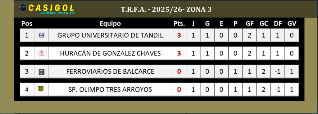 HURACÁN (GONZALES CHAVES) 2 VS. 1 SP. OLIMPO (TRES ARROYOS)