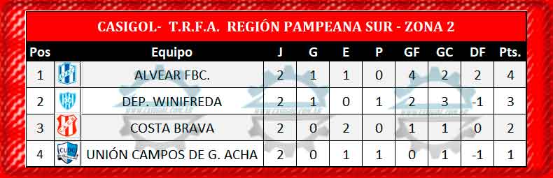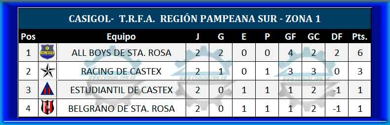 La segunda fecha del T.R.F.A. para los clubes de nuestra provincia, dio inicio el pasado viernes con el encuentro que All Boys le ganó a Racing por tres a dos en la zona 1 de la Región Pampeana Sur, prosiguió con el empate entre Unión Campos de Acha y Costa Brava sin abrir el marcador, En el Próspero Yañez Estudiantil y Belgrano igualaron en un tanto por lado y en Intendente Alvear el azul se impuso a Deportivo Winifreda, por tres a uno.